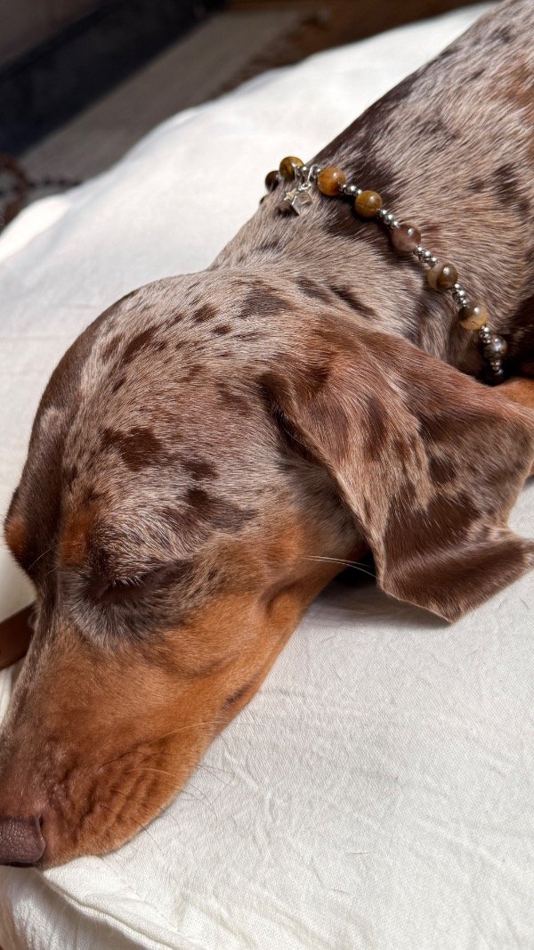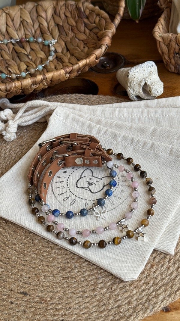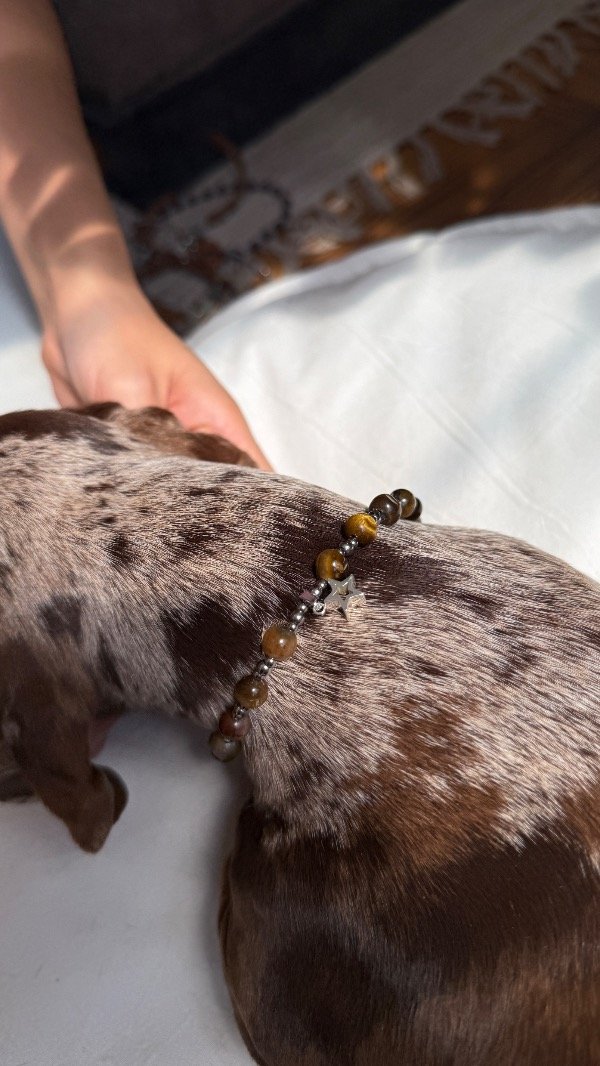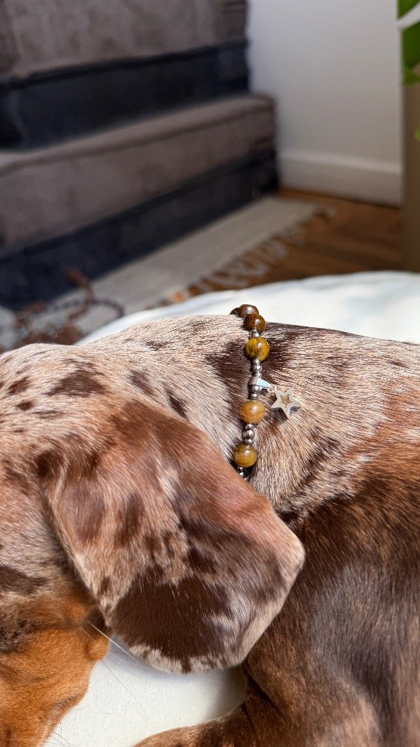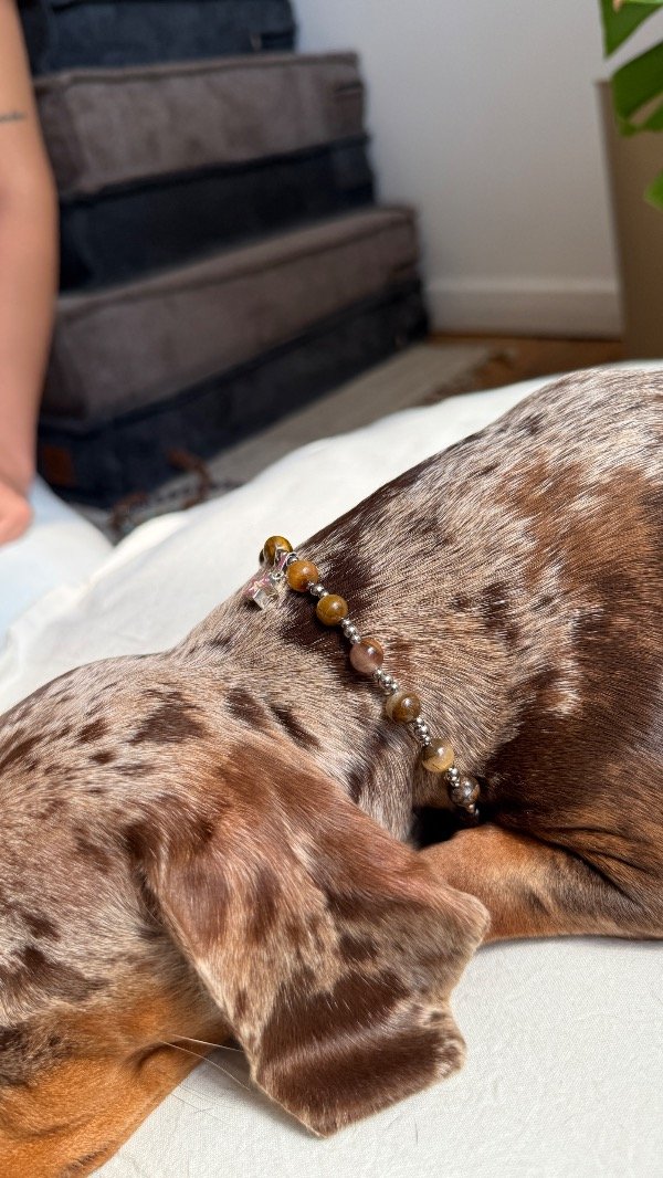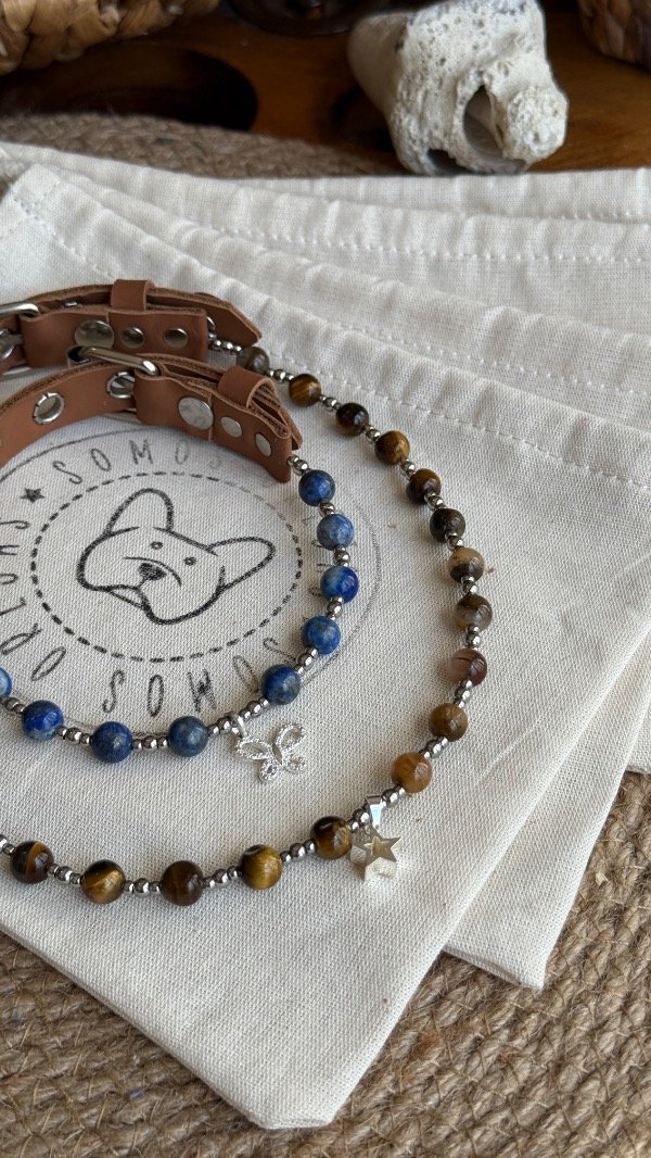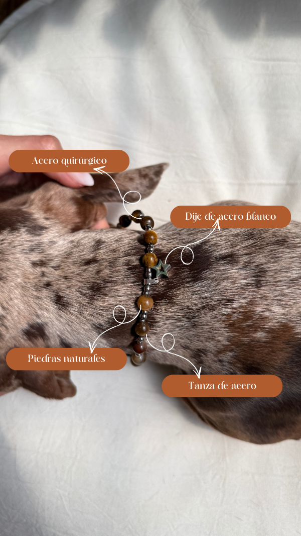 Este collar está pensado como accesorio decorativo y energético, para acompañar el día a día de tu mascota con un diseño especial.