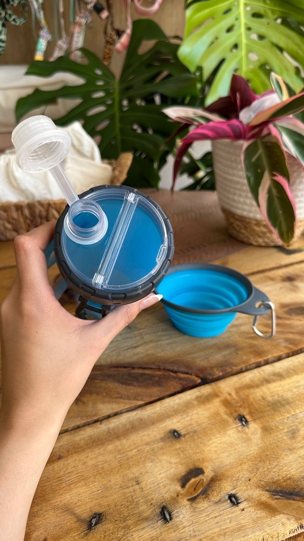 🥤 Botella Multiuso con Bowl Plegable – Agua + Comida en un Solo Lugar