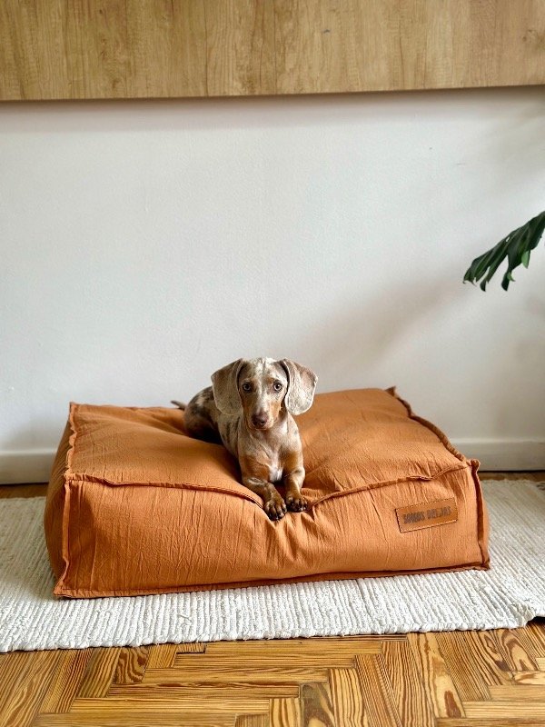 La Cama Prana de Somos Orejas es ese rincón donde tu mascota descansa feliz, sin malos olores, sin complicaciones, y con el diseño cálido que acompaña tu casa.