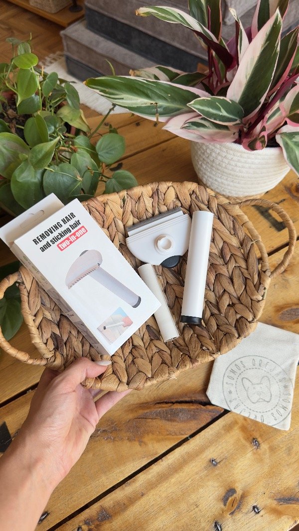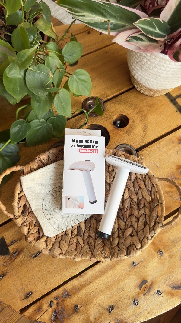 Además, incluye un rodillo quitapelos adhesivo, ideal para ropa, sillones, camas, mantas y superficies textiles.