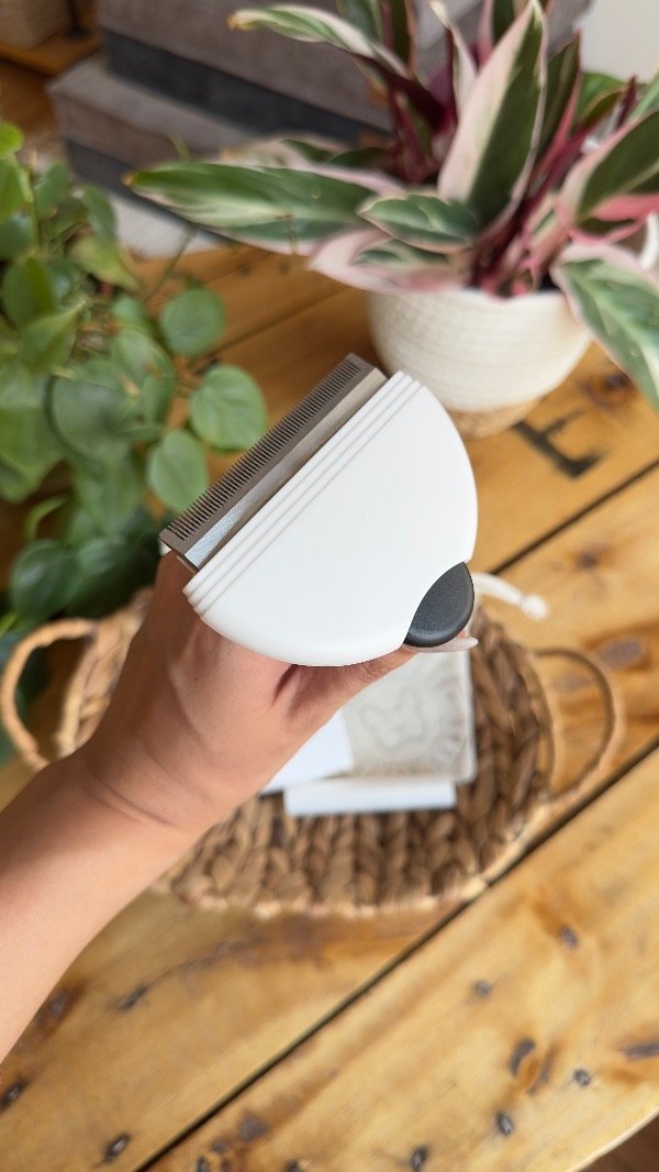 Gracias a sus dientes de acero bien juntos, saca gran cantidad de pelo en pocas pasadas, sin tirar, sin lastimar y sin incomodar.