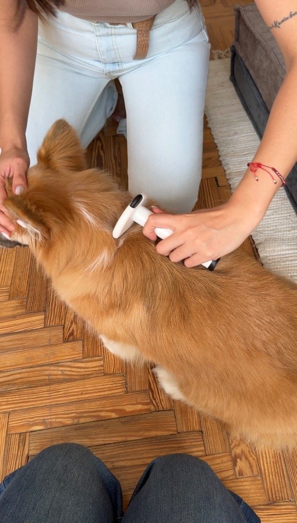 Usar sobre el pelaje seco, pasando suavemente en el sentido del pelo.