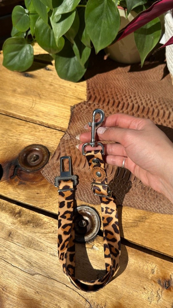 Este modelo es universal y se engancha directamente al broche del cinturón del auto, regulando el largo para que tu compañero viaje cómodo y seguro.