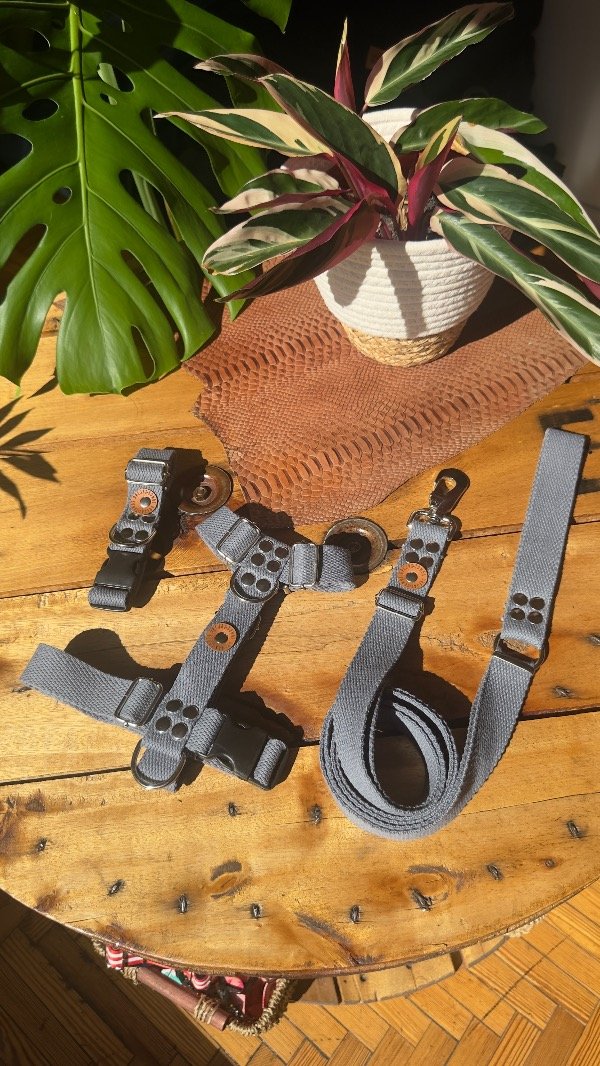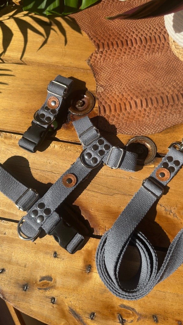 El Combo de Paseo Confort para perros de Somos Orejas reúne todo lo que necesitás para salir a pasear con tu mascota: collar regulable, pretal H y correa de algodón 100%, confeccionados a mano para brindar suavidad, seguridad y comodidad en cada salida.