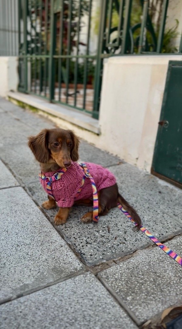 Rodeá con el centímetro la parte más ancha del pecho, justo detrás de las patas delanteras. Asegurate de que quede cómodo, ni muy flojo ni apretado.