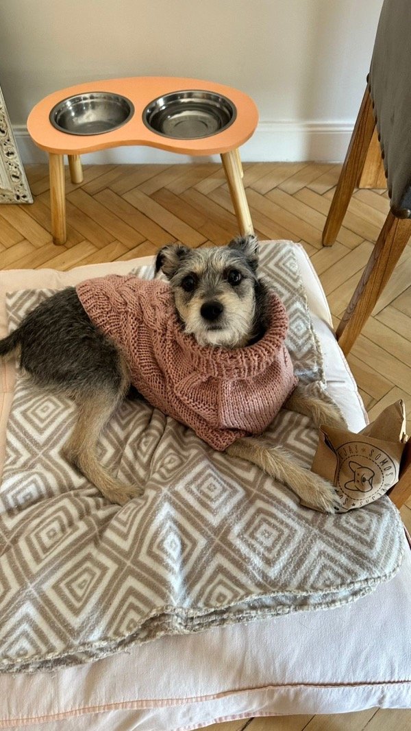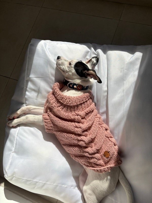 Suéter tejido a mano con lana suave y abrigada, ideal para proteger del frío durante los meses más frescos. Su diseño con trenzas realzadas y cuello alto brinda comodidad y estilo, sin restringir el movimiento de tu mascota.