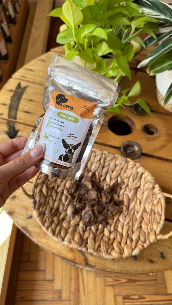 La Mini Carne de Cerdo deshidratada es un snack 100% natural, ideal para usar como premio diario, refuerzo positivo en entrenamiento o complemento saludable en su alimentación.