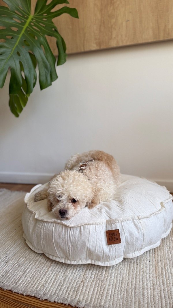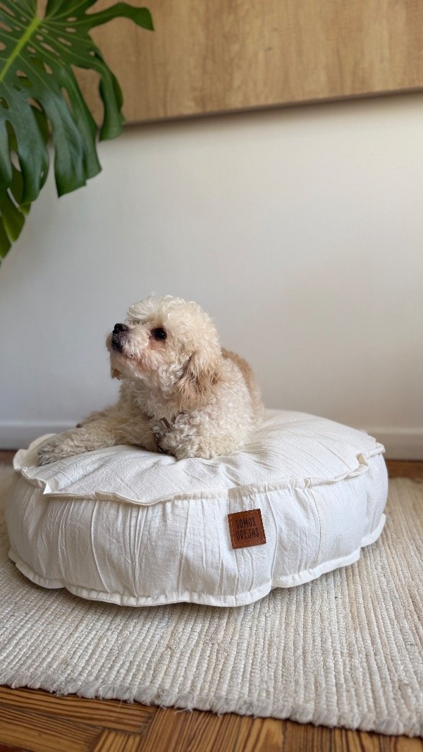 La Cama Macaron de Somos Orejas es ese rincón cómodo donde tu mascota descansa feliz, sin malos olores, sin complicaciones y con el diseño cálido que acompaña tu casa.
